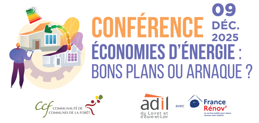 La Communauté de communes de la Forêt, en partenariat avec l’ADIL Espace Conseil France Rénov du Loiret, vous propose, dans ses locaux (2, rue de la Chaubardière), une rencontre sur le thème : « Économies d’énergie : bons plans ou arnaques ? »
